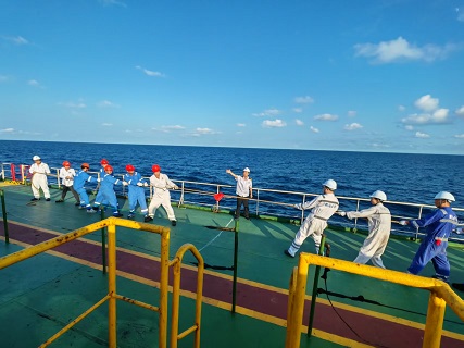 海上拔河比赛虽然形式简单,却有效凝聚了团队力量,弘扬了拼搏精神。丰富船员业余文化生活的同时,也展现了航海人团结协作、奋发向上的精神风貌。船员弟兄们以这种独特的方式,表达了对祖国的深切热爱与祝福。