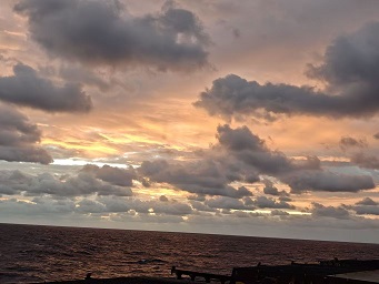 航行途中,大海赠予了我无数难忘的风景。碧波万顷的蔚蓝大洋一望无际,清晨朝霞映海,傍晚晚霞满天,日出日落、云舒云卷,既开阔了眼界,也沉淀了心境。