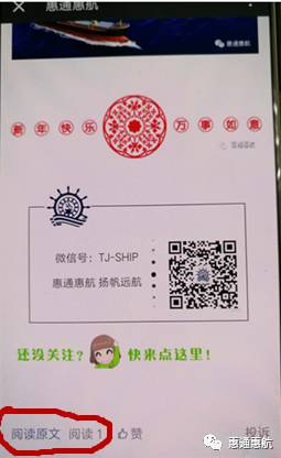 4、点击阅读原文,即可打开惠通惠航手机版门户网站;