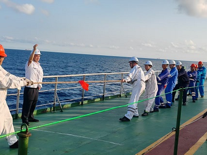 海上拔河比赛虽然形式简单,却有效凝聚了团队力量,弘扬了拼搏精神。丰富船员业余文化生活的同时,也展现了航海人团结协作、奋发向上的精神风貌。船员弟兄们以这种独特的方式,表达了对祖国的深切热爱与祝福。